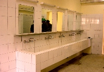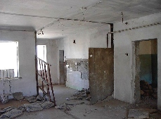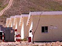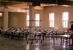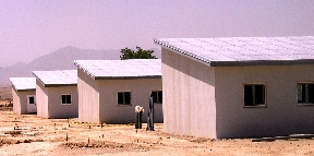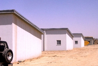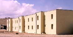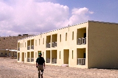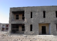 BACHELOR OFFICERS QUATERS: Four existing buildings that were damaged renovated. Three of the buildings were two story stairwell apartment buildings and they were reconfigured and re-designed to house the Brigade staff. This included an apartment for the Brigade General, a one bedroom apartment for a visitor, single bedrooms for 1 COL, 6 LTC, 1 CSM, 1 E9; double person bedrooms for 2 MAJ, 6 CPT, 2 LT, 6 E8, 6 E7; 6 additional sleeping rooms for overflow; larger open sleeping areas for a total of 37 enlisted personnel; separate common toilet facilities for officers and enlisted personnel. The fourth building was badly bombed and damaged and determined to be demolished. The fourth building was to be re-designed to house the Brigade Headquarters. The individual units were equipped with ceiling fans, new ceiling lighting fixtures, electrical and telephone outlets, and cable TV connections. Common toilets and showers stalls were provided at each building. |